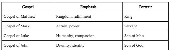 This pattern of one source expressed in four ways does not stop in Genesis. It appears again in how Messiah is revealed to the world. Each Gospel presents Yeshua from a distinct angle: